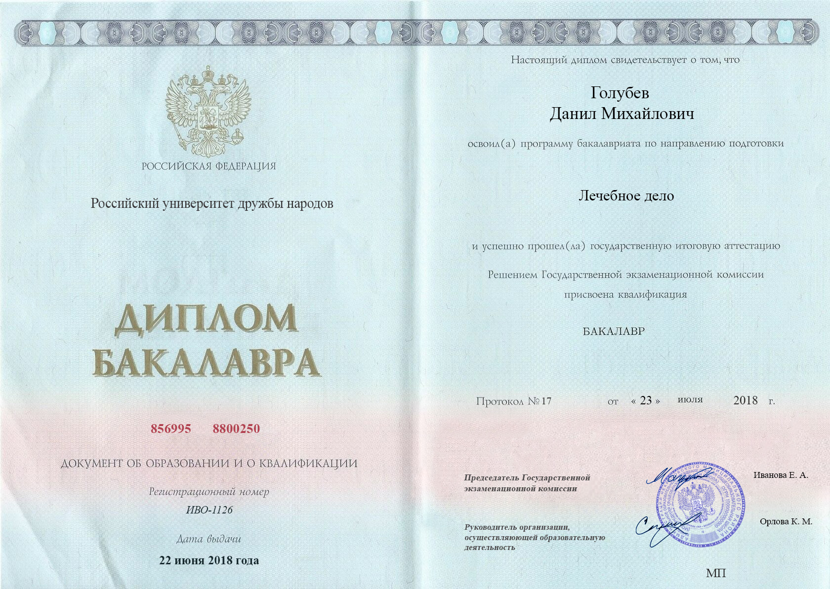 Диплом специалиста Голубева Данила Михайловича